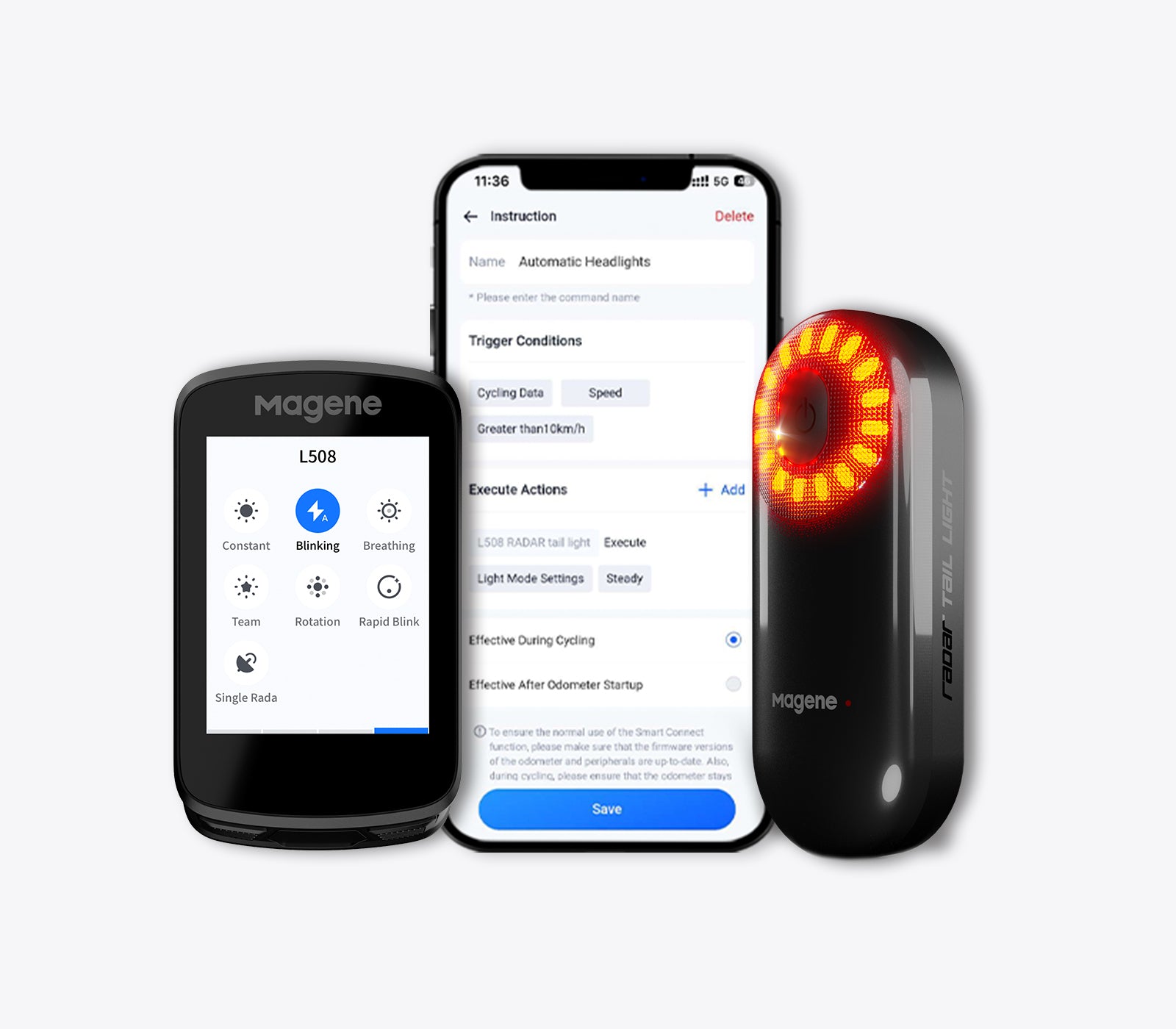 - Asistente de conducción inteligente : interacciones inteligentes con la luz trasera de radar Magene L508 y la luz trasera de expresión L308 para una mayor seguridad.