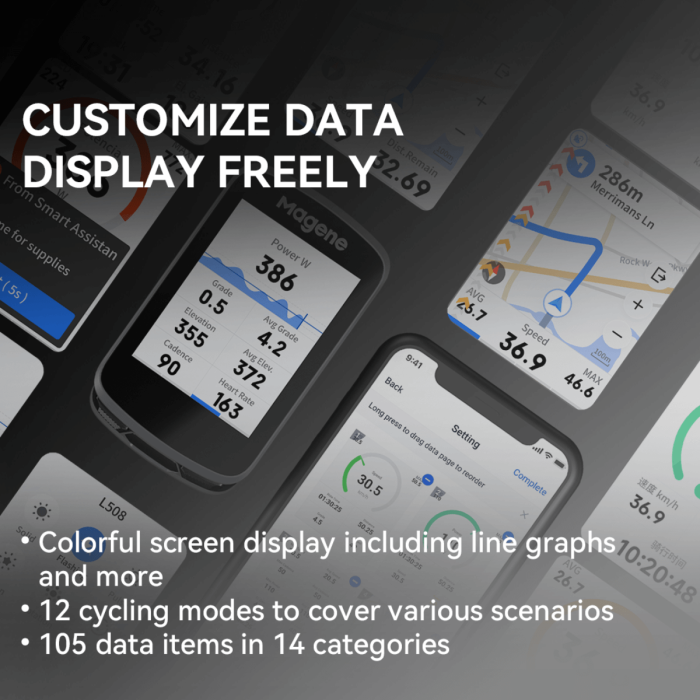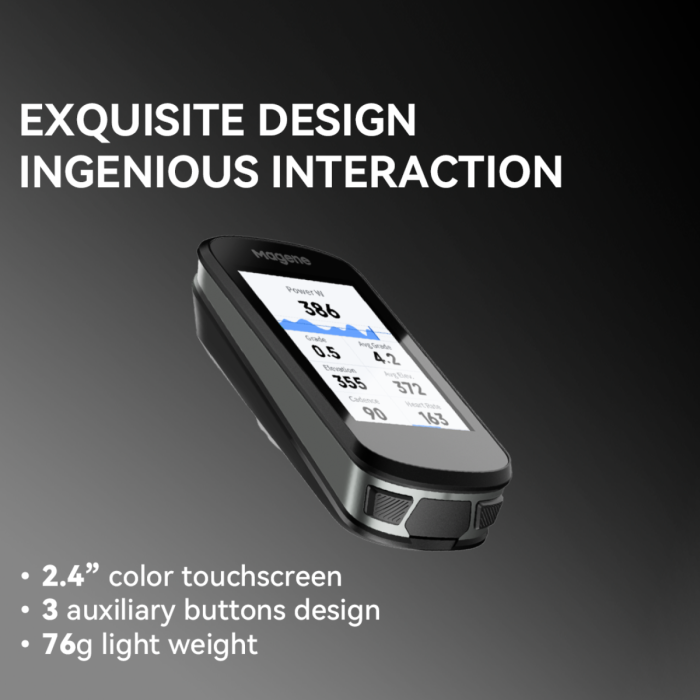 Computadora de ciclismo GPS Magene C506: pantalla táctil a color de 2,4" con navegación paso a paso , conectividad WiFi y Bluetooth , y pantallas de datos personalizables .